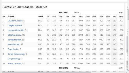 1. Για όποιον πιστεύει ότι ο Ντε Αντρε Τζόρνταν απλώς καρφώνει και για αυτό ευστοχεί , υπάρχει και αυτό. http://fivethirtyeight.com/features/the-nbas-best-and-worst-shot-makers/