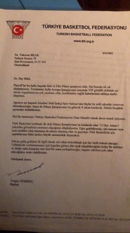 Όταν οι Ελληνες κατέλαβαν την Σμύρνη, διέταξαν τον πατέρα μου. "Βγάλε το φέσι σου και βάλε καπέλο. Παράκουσε την εντολή τους λέγοντας "ειστε καλεσμένοι εδώ. Μια μέρα σύντομα θα πάτε πίσω από εκεί που ήρθατε. Ταϊζω την οικογένεια μου με αυτό το φέσι και αυτή είναι η γη μου". Μας μεγάλωσε με αυτή την ιδέα και ο αδερφός μου κι εγω θεωρήσαμε - και θεωρούμε - αυτή την γη ως την αληθινή πατρίδα μας. Ανέβηκα στον υψηλότερο βαθμό που ένας νεαρός αθλητής μπορεί να κατακτήσει. Ξεκίνησα στην πεντάδα όταν κερδίσαμε τους Έλληνες μέσα στην Αθήνα. Και στην Ινσταμπούλ χάσαμε την ρεβάνς, αλλά σκόραρα τους περισσότερους πόντους. Εγινα διεθνής διαιτητής και εκπροσώπησα με αυτή την ιδιότητα την Τουρκία στο Μιλάνο, στην Γιουγκοσλαβία και στην Ολυμπιάδα του 1952. Υπηρέτησα την χώρα μου με τιμή, σαν Τούρκος, με το αστέρι και την ημισέλινο στο στήθος. Και είμαι περήφανος για αυτό.