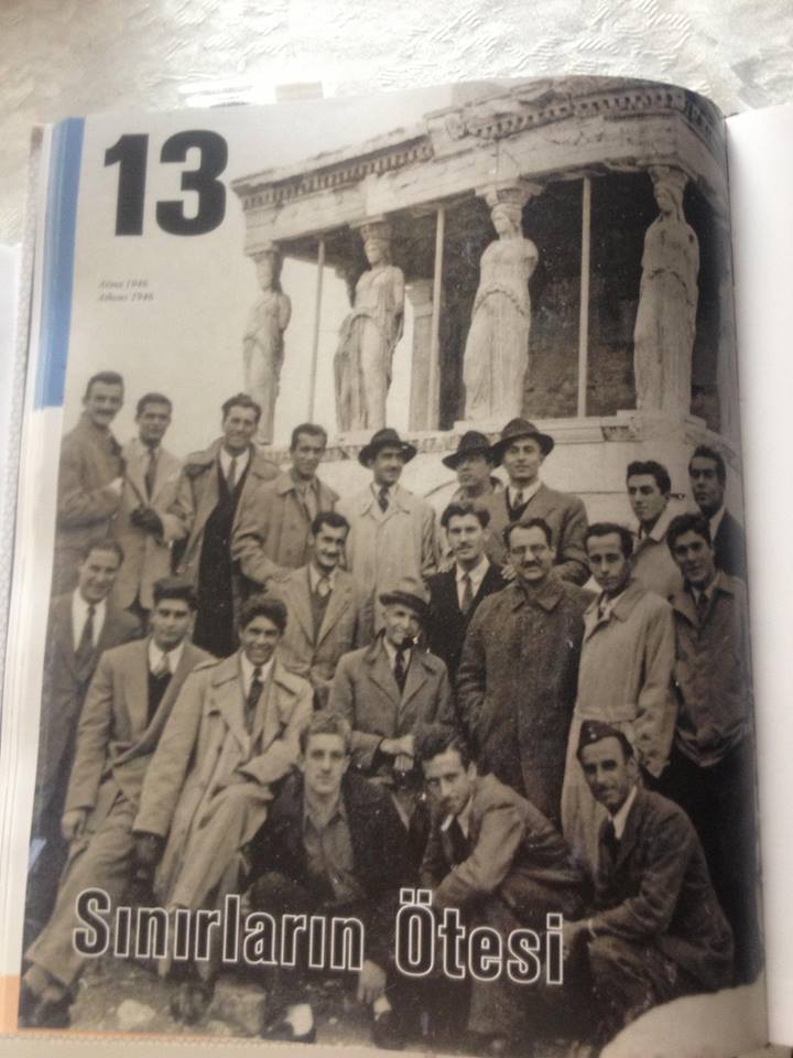 Η εθνικη Τουρκιας στην Ακρόπολη, πριν από το διεθνές φιλικό του 1946. Στην λεζάντα αναφέρεται "Πέραν των συνόρων". Φωτογραφία από το βιβλίο "Turgut Atakol, Sporun Efendisi", του Oygur Yamak