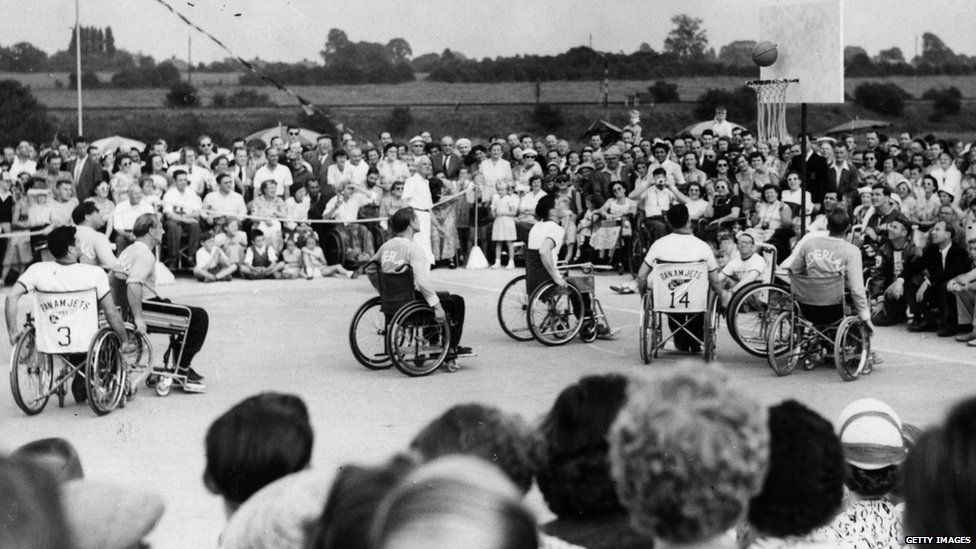 Aγώνας από τα Stokemandeville games του 1957, μεταξύ ΗΠΑ και Ολλανδίας (πηγή BBC, ghetty images)