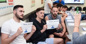 Στην φωτογραφία, εκπρόσωποι των παικτών του πρωταθλήματος Ισραήλ, με κάρτες προαναγγελίας της απεργίας