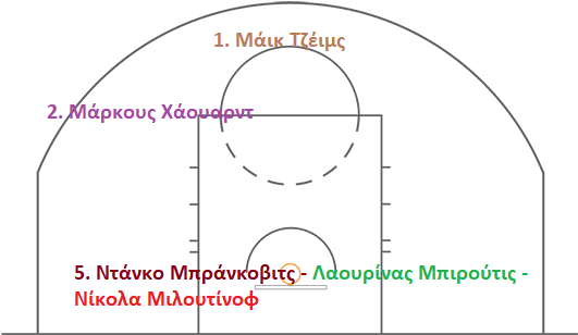 3. Περίεργη πεντάδα αυτή την αγωνιστική, καθώς διάφοροι σέντερ κυριάρχησαν. Ας ξεκινήσουμε από την Μπάγερν και τον Ντάνκο Μπράνκοβιτς, που είχε ήδη δείξει σημάδια της επιρροής του σε προηγούμενα ματς. Δεν παίρνει πολύ χρόνο γενικά, αλλά αυτή τη φορά αγωνίστηκε για 17 λεπτά, προλαβαίνοντας να πετύχει 14 πόντους με 7/9 και να κατεβάσει έξι επιθετικά ριμπάουντ (+3 αμυντικά). Επιπλέον, ευθύνεται εν πολλοίς και για τη χαμηλή απόδοση του Γιοχάνες Τίμαν, που δεν μπόρεσε να πλησιάσει το καλάθι στο γερμανικό ντέρμπι. Α, έκανε και 2 μπλοκ ο Ντάνκο.
