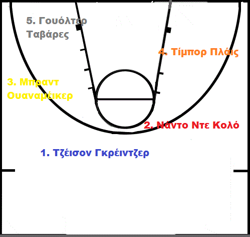 5. Γουόλτερ Ταβάρες. Ο σέντερ από το Πράσινο Ακρωτήρι (που δεν είναι ούτε πράσινο καθώς είναι τίγκα στην ξηρασία, αλλά ούτε και ακρωτήρι) συνεχίζει τις "γεμάτες" εμφανίσεις και ουσιαστικά με τον Κούζμιτς εκτός και τον Ράντολφ μία να παίζει και πέντε να κάθεται λόγω τραυματισμών, είναι εκείνος και ο βετεράνος Ρέγιες που κρατούν όλη την φροντλάιν των Μαδριλένων. Ο τρόπος που χρησιμοποιεί το τεράστιο μέγεθός του είναι ικανοποιητικός και ο Γουόλτερ δείχνει μέχρι στιγμής ότι μπορεί να θεωρηθεί ένας πρώτης κατηγορίας σέντερ για το επίπεδο της διοργάνωσης. Στα 25' που έπαιξε πέτυχε 14 πόντους με 5/7διπ, 4/7β, 9ριμπ, 1κλ, 1λ και 25PIR. Ο ψηλός της Ρεάλ είχε και σημαντική συμβολή και στην άμυνα, βοηθώντας στο να παραμείνουν στους 11 πόντους αθροιστικά οι Ντάνστον και Στίματς.